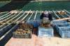 筏の上に水揚げし養殖ロープから牡蠣を外す作業をしているところですが、