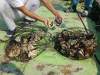 すべての作業が済むと籠に入れ船べりにつるして出荷待ちとなります。