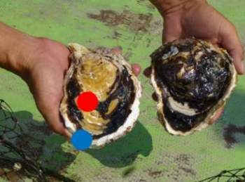 牡蠣は口の方からみて左側に貝柱があります。上の写真赤丸の部分です。