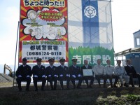 平成28年11月9日、都城市内の建設現場で防犯啓発シートを掲げました。